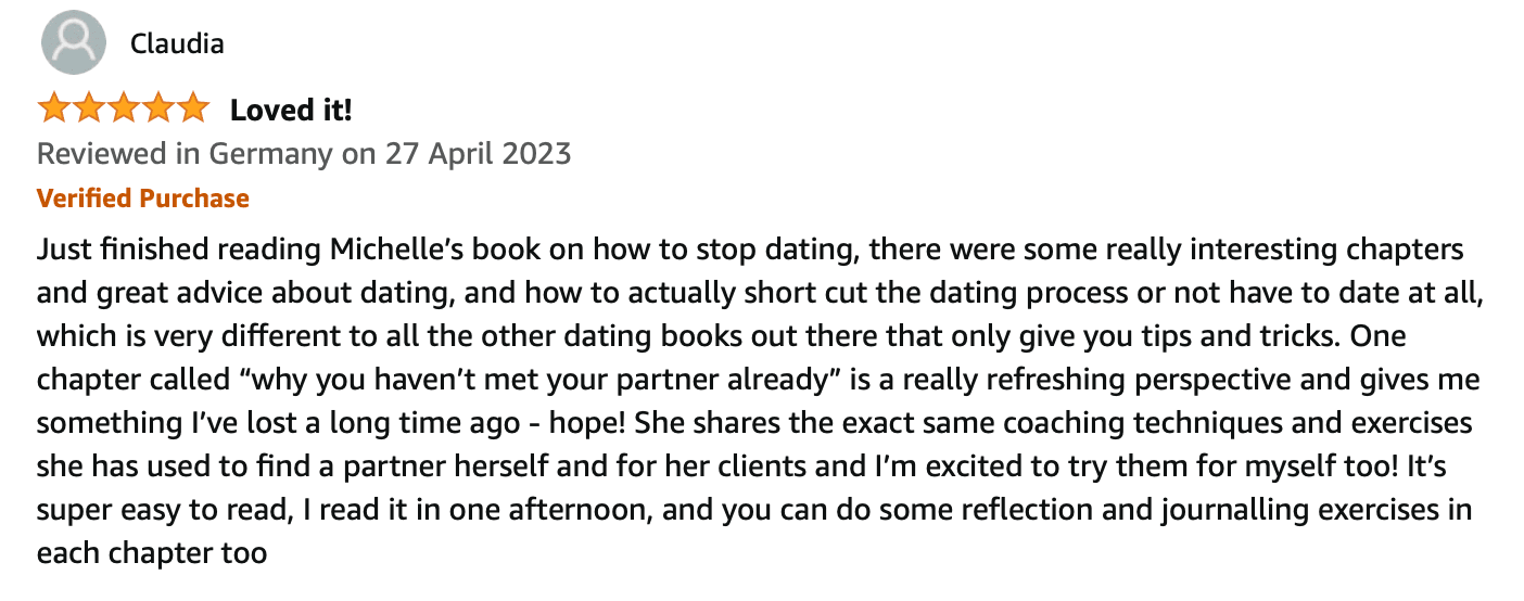 Having been on both sides of the fence - in long term, happy relationships for 12 years, and also chronically single for 5 years, made me realise that finding love and the right person is NOT a random coincidence - it's something you can take the right action - and get the right results!